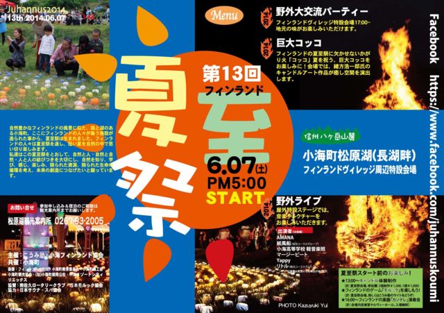 ´ÉÍý¿ÍÍͤª¼Ú¤ê¤·¤Þ¤¹¡£ º£Ç¯¤âÂè13²ó¡Ø¥Õ¥£¥ó¥é¥ó¥É²Æ»êº×¡Ù¤ò³«ºÅ¤·¤Þ¤¹¡£ ¿´ÇÛ¤ò¤µ¤ì¤Æ¤Þ¤·¤¿¥Õ¥£¥ó¥é¥ó¥É¡¦¥ô¥£¥ì¥Ã¥¸¤â¸³¤ò¤·¤Þ¤·¤Æ¡¢Æ±¤¸²ñ¾ì¤Ë¤Æº£Ç¯¤â³«ºÅ¤ò¤¤¤¿¤·¤Þ¤¹¡£ ºòǯ¤ÏÀ¸Áþ¤Î±«ÌÏÍͤǡ¢¤ª±Û¤·¤Ë¤Ê¤é¤ì¤¿Êý¡¹¤Ë¤ÏÉÔ¼«Í³¤ò¤ª¤«¤±¤·¤Þ¤·¤¿¡£ º£Ç¯¤ÏÁá¤á¤Ë³«ºÅ¤ò¤¹¤ë¤³¤È¤Ç¡¢Çß±«¤Î±Æ¶Á¤ò¼õ¤±¤º¤ËºÑ¤àÍÍ¡¢ÆüÄø¤òÄ´À°¤·¤Þ¤·¤¿¤¬¡¢²°³°¤Î»ö¤Ç¤¹¤Î¤Ç¡¢¤ªÅ·µ¤¤òµ§¤ë¤Ð¤«¤ê¤Ç¤¹¡£ ²ñ¾ì¤Î¾®³¤Ä®¤Ï¿®½£¡ÊĹÌ¡Ë¤ÎÅìÉô¤Ë°ÌÃÖ¤ò¤·¡¢ËÌȬ¥ö³ÙÏ¢Êö¤Îϼ¤Ë¤¢¤ë¡¢¿¹¤È¸Ð¤Ë°Ï¤Þ¤ì¤¿¹â¸¶¤ÎÄ®¤Ç¤¹¡£ ¤½¤³¤Î¾¾¸¶¸ÐÈʤˤ¢¤ë¤Î¤¬¡Ö¥Õ¥£¥ó