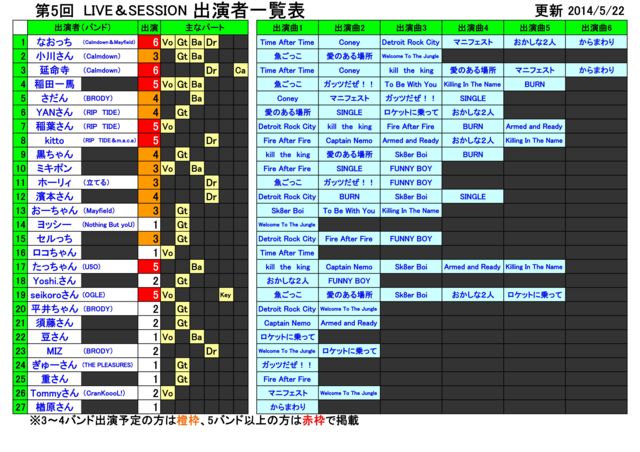¤ª¤¶¤Þ¤¹°ðÅİìÇϤǤ¹¤ë¡ª¡ª¿·¤¿¤Ê»î¤ß¤¬¤¢¤ê¤Þ¤·¤¿¤Î¤Ç¤ªÃΤ餻Ãפ·¤Þ¤¹¡£ Âè5²óLIVE¡õSESSION¡¢ÀèÆü¿·¤¿¤Ê»î¤ß¤Ç¡Ú¥¨¥ó¥È¥ê¡¼¶Ê°ìÍ÷ɽ¡Û¤òºîÀ®¤·¡¢ ¸½»þÅÀ¤Ç¤Î¥¨¥ó¥È¥ê¡¼¤¬¤ï¤«¤ë¤è¤¦ºîÀ®Ãפ·¤Þ¤·¤¿¡£ ¤·¤«¤·Ã¯¤¬¤É¤Î¥Ð¥ó¥É¤òÁȤó¤Ç¤¤¤Æ¡¢ ¤³¤Î¥Ñ¡¼¥È¤Ï¾¤Ë¤É¤ó¤Ê¿Í¤¬¤¤¤ë¤«¤¬¤ï¤«¤ê¤Ë¤¯¤¤Ì̤⤢¤Ã¤¿¤È»×¤¤¤Þ¤¹¡£ ¤½¤³¤Ç¥¨¥¯¥»¥ëÂè2ÃÆ¡ª¡ª ¥Ù¥¯¥È¥ë¤ò½Ð±é¼Ô¤Ë¸þ¤±¤Æ¡Ú½Ð±é¼Ô°ìÍ÷ɽ¡Û¤òºîÀ®Ãפ·¤Þ¤·¤¿¡ª¡ª ÃíÌÜÅÀ¤ò°Ê²¼¤Ë¤Þ¤È¤á¤Æ¤ß¤Þ¤·¤¿¤Î¤Ç¤¹¤ë¤ó¤ë¤ó¡ª ¢£½Ð±é¼ÔËè¤Ë½Ð±éͽÄê¤Î¥Ð¥ó¥É¿ô¤òÄ󼨡ª¡ª ¢£3¥Ð¥ó¥É°Ê¾å½Ð±é¤ÎÊý¤ÏÎÐ
