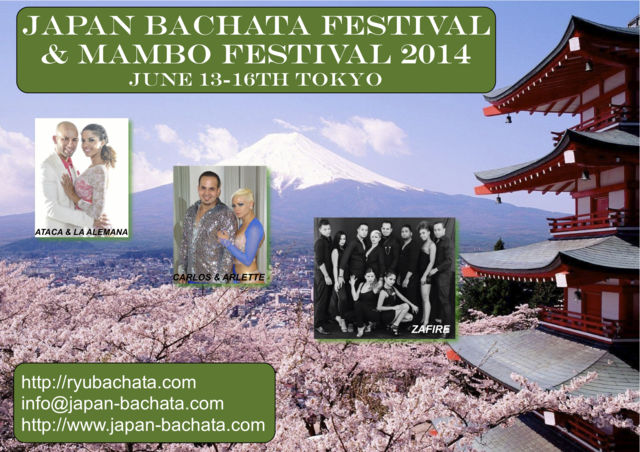 ¡ú5th Annual JAPAN BACHATA FESTIVAL & 2nd Annual JAPAN MAMBO FESTIVAL 2014¡ú ¢¡International Guest: -Jorge Ataca -Tanja La Alemana -Carlos Herrera -Arlette Guerra -Rodrigo Jimenez -Wendy Jimenez -Zafire -Seaon Stylist-Bristol -Alex Teodorescu -Saori Watanabe -Jorge Zubieta -Bangkok Touch ¢¡Schedule: ¡ü6/11(¿å)La Alemana Bachata Ladies WS @JBA ¡ü6/12(ÌÚ)Ataca & La Alemana Welcome Party @Caribe ¡ü6/13(¶â)JBF & JMF 2014 Pre Party @JBA ¡ü6/14(ÅÚ)Japan Bachata Festival 2014 @