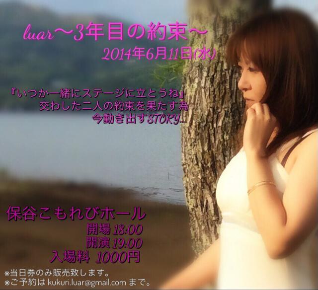 ¡Ö¤¤¤Ä¤«Æ±¤¸¥¹¥Æ¡¼¥¸¤ËΩ¤È¤¦¤Í¡× ¤½¤¦¸ß¤¤¤ËÌó«¤ò¤·¹ç¤Ã¤¿£²¿Í¤¬ £³Ç¯¤Î»þ¤ò·Ð¤Æ²Ì¤¿¤¹Ìó«¤Î£Ó£Ô£Ï£Ò£Ù¡£ ¾®ÎÓͳ²Â¤È¤ÎÌó«¤ò²Ì¤¿¤¹¤¿¤á¤Ë Ì¿¤ò·ü¤±¤¿Last Live¤ò¹Ô¤Ã¤¿¤³¤â¤ì¤Ó¥Û¡¼¥ë¤Î¥¹¥Æ¡¼¥¸¤Ë £³Ç¯¸å¤ÎƱ¤¸Æü¤Ë¾®ÎÓͳ²Â¤È¶¦¤Ëluar¤¬¥é¥¤¥Ö¤ò¹Ô¤¤¤Þ¤¹¡£ Æü»þ¡¡Ê¿À®26ǯ6·î11Æü¡Ê¿å¡Ë ¾ì½ê¡¡ÅìµþÅÔÀ¾Åìµþ»ÔÃæÄ®1-5-1¡¡ÊÝ뤳¤â¤ì¤Ó¥Û¡¼¥ë ¾®¥Û¡¼¥ë ¡Øluar¡Á3ǯÌܤÎÌó«¡Á¡Ù ³«¾ì¡¡18¡§00 ³«±é¡¡19¡§00 Æþ¾ìÎÁ¡¡1,000±ß