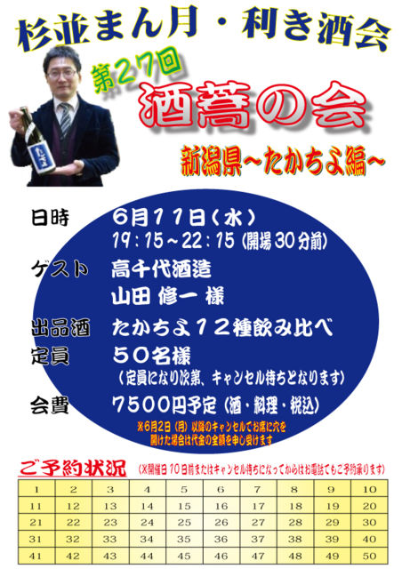 Â裲£·²óÌܤμò¶¾¤Î²ñ¤Ï¡¢Âþº£µÞÀ®Ä¹¤·¤Æ¤¤¤ë¿·³ã¸©Æîµû¾Â»Ô¡¦¹âÀéÂå¼ò¤¤Î¡Ö¤¿¤«¤Á¤è¡Ù¡õ¡Ö¹âÀéÂå¡×¤ò¡¢»³ÅĽ¤°ìÍͤò¥²¥¹¥È¤Ë¤ª·Þ¤¨¤·°û¤ßÈæ¤Ù¤·¤Þ¤¹¡£ mixi¤Ç¤Ï¡¢²¼µÃí°Õ»ö¹à¤ò¤´³Îǧ¤Î¤¦¤¨¡¢¤´Í½Ì󲼤µ¤¤¤Þ¤»¡£ ¡ú¤´Í½Ìó¼õÉÕÊýË¡¡ú ¸½ºß¡¢¤´ÍèŹ¤´°û¿©¤µ¤ì¤¿¤ªµÒÍͤòÍ¥À褷¤Æ¤´Í½Ìó¼õÉÕ¤·¤Æ¤ª¤ê¤Þ¤¹¡£ ¤ªÅÅÏá¢mixi¤«¤é¤Ï¡¢ »ÄÀʤ¬¤¢¤ì¤Ð³«ºÅÆü10ÆüÁ°¡Ê£¶¡¿£±¡Á¡Ë¡Á¡¢¤â¤·¤¯¤Ï¥¥ã¥ó¥»¥ëÂÔ¤Á¾õÂ֤ˤʤä¿Æü¤«¤é¥¥ã¥ó¥»¥ëÂÔ¤Á¤Ë¤Æ¼õÉÕ¤µ¤»¤ÆÄº¤¤Þ¤¹¡£ ¡úÎÁÍý¡ú ¿·³ã¤ÎÌ£³Ð¤È½é²Æ¤Î¿©ºà¤ò¤Õ¤ó¤À¤ó¤Ë¡ª ¡ú¾ì½ê¡ú Åì