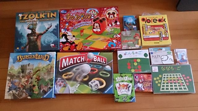 平日なら遊べるという人がいたので 遊べるときに開催できたらと思っています 2人以上、参加するならやりますよ (2人用のゲームもプレイしたいため) 参加する人によってやるボードゲームは変更します 2人でも十分楽しめるし、遊べます またコミュに入っていない人でも参加は可能です (ミクシィをやっていない、親子で息子・娘と一緒に参加など) その場合は、コミュに参加している人が合計の人数を教えてください もしくは管理人のカレンダーにて教えてくださいませ 一応2・3歳対応のボードゲームも、いくつかはあります