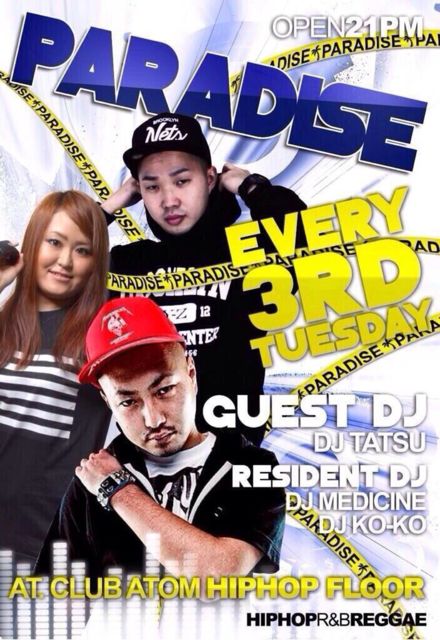 「F※※k the weekend We party on Tuesday」のコンセプトのもと、週末でもあり得ない程のDJ達が贅沢に集い、平日火曜の夜をどこよりも最高に盛り上げます。音楽はジャンルレスに、誰もが楽しめるEDMはモチロン、海外でヒットしている様々なジャンルを絶妙なスキルで織り交ぜ選曲します。