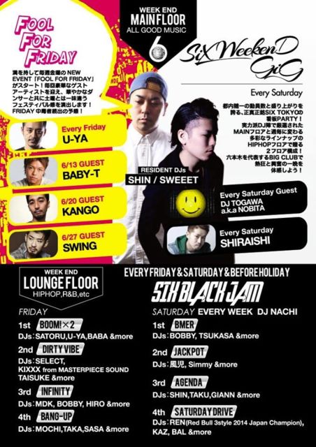 PARTY『SIX WEEKEND GIG』の金曜日が『FOOL FOR FRIDAY』として新たにスタート!!