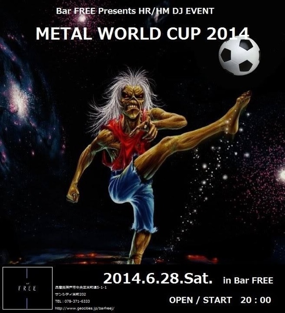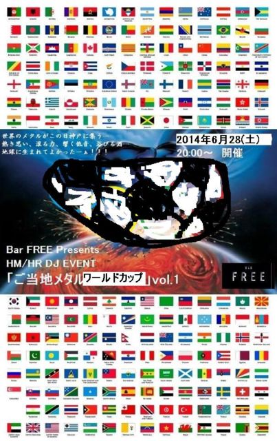 2013年の9月、突発的に開催された、超ニッチな企画が再始動w 「ご当地メタルオリンピック」改め「ご当地メタルワールドカップ」! 時事ネタに左右されまくりな感じですが、名前が変わるだけで中身は一緒ですw 日時:2014/06/28(土) 20:00〜 DJイベントと言いながら、iPodなどの携帯型プレーヤーがあればOK。 まぁいつものFREE企画イベントみたいな感じです。 イベント内容は至極簡単。 各々が担当する出身国で、選曲するバンドを縛ったDJ達による、 さながらキン肉マンの超人オリンピックのような(笑)DJイベントを想定してい