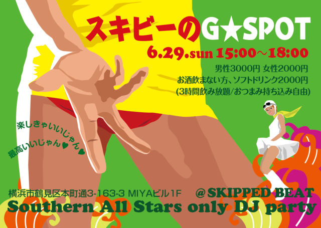 6/29 sun ¥¹¥¥Ó¡¼¤ÎG¡úSPOT ÉûÂê¡¿SKIPPED BEAT DJ NIGHT¡Á¥¹¥±¥Ù¤ÊDJ¤ÎÌë¡Á¡Ê¾éÃÌ¡Ë ¤É¤¦¤â¥¹¥±¥Ù¤Ç¡¼¤¹¡ª¡ù¤È¤¤¤¦¤³¤È¤Ç6·îËö¤Ë¡ÖSKIPPED BEAT¡×¤ÇDJ¥¤¥Ù¥ó¥È¤ò ¤ä¤é¤»¤Æ¤¤¤¿¤À¤¯¤³¤È¤Ë¤Ê¤ê¤Þ¤·¤¿¡ª ¤Þ¤Ã¤Ô¤ë¤Þ¤«¤é¥¢¥²¥¢¥²¤Ç¤¤¤Ã¤Á¤ã¤¤¤Þ¤·¤ç¡Á¡Á¡ù ¾ðÊó¤Ê¤É¿ï»þ¹¹¿·¤·¤Æ¤¤¤¤Þ¤¹¤Î¤Ç¥è¥í¥·¥¯¤ª´ê¤¤¤·¤Þ¤¹¡ª ¢£»þ´Ö 15:00¡Á18:00 ÃËÀ3000±ß ½÷À2000±ß ¤ª¼ò°û¤Þ¤Ê¤¤Êý¡¢¥½¥Õ¥È¥É¥ê¥ó¥¯2000±ß (3»þ´Ö°û¤ßÊüÂê/¤ª¤Ä¤Þ¤ß»ý¤Á¹þ¤ß¼«Í³) ¢£¾ì½ê SKIPPED BEAT ²£ÉÍ»ÔÄḫ¶èËÜÄ®ÄÌ£³-£±£¶£³-£³ MIYA¥Ó¥ë1F ÅÅÏÃ045-717-8212