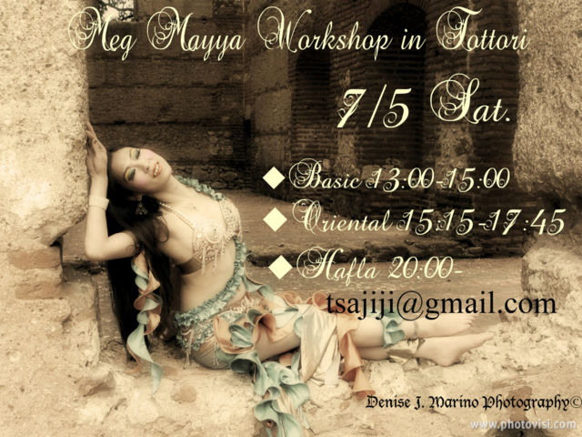 管理人様、告知失礼いたします 山陰地方で初めてのワークショップです ハフラも一緒に楽しみましょう! <MegMayya ワークショップ> ◯日時 (2014年7/5(土)... □WS1基礎とテクニック 13:00〜15:00 多数のコンペ受賞歴の経験と、華やかなステージングをベースにした基礎から高度なテクニックまで、10年を超える講師経験を活かして丁寧に指導します。 □WS2(C) オリエンタル振付 15:15〜17:45 オーディションで選出されるBDEメンバーとして日本及びアメリカ公演に参加した経験を生かし、BD