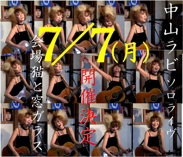 ■タイトル 中山ラビ ソロライヴ名古屋2014 ■日時 2014年7月7日(月) op.18:30 st.19:30 ■会場 カフェ&バー「猫と窓ガラス」 〒455−0037 愛知県名古屋市港区名港2-10-11南 地下鉄築地口駅南徒歩5分名古屋港駅北徒歩5分 (電話) 052-654-3125 (メール) yozora@fa3.so-net.ne.jp (FB) https://www.facebook.com/necotomadogarasu ■料金 3000円 飲食別途 ■メモ ひととせぶりの名古屋ライヴです。 会場の「猫と窓ガラス」は早川義夫さんお気に入りのカフェ&バーで 先日、ライヴも開催されていました。 ぜひこの機