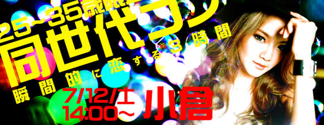 『25〜35歳限定!同世代コン-小倉(7/12)』 同世代だからこそ、話せる☆ 同世代だからこそ、楽しめる☆ 同世代だからこそ、出逢える☆ 話題はドラマ・音楽・好きなアイドルなど同世代ならではの話題で持ち切りなことは間違いありません♪ 異性のみならず同性とも仲良くなれて、素敵な出逢いが懐かしさを思い出してくれます! それがLINEXT-Nation presents【同世代コン】です。 今回は25〜35歳の方々が対象です! 中学生の時の流行ったドラマは? 高校生の時のみんなで歌った音楽は? そんな話しをしながら、 仲良くなれ