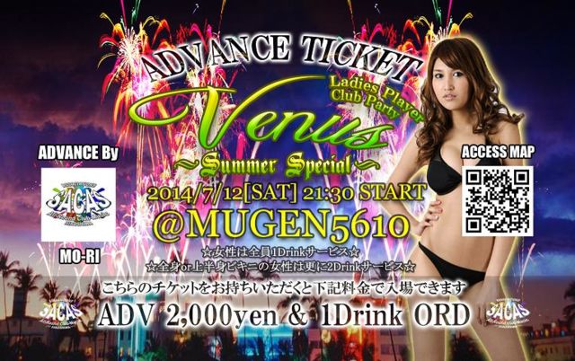 ☆SUMMER SPECIAL割:全身or上半身ビキニでお越しの女性…更に2ドリンクサービス
