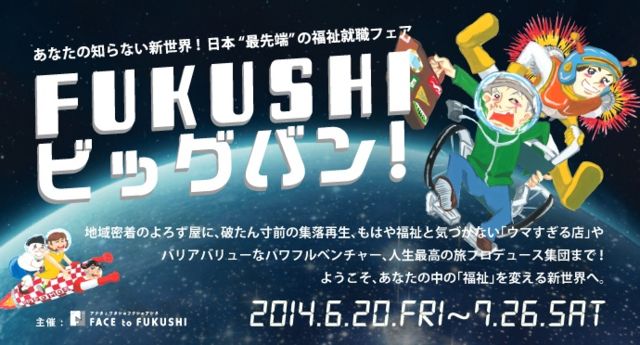 大阪市西区の施設「ハローライフ」(http://hellolife.jp)にて、 就職活動中の若者へ向けた福祉業界への関心度向上やキャリアの選択肢となりうるための企画展「FUKUSHIビッグバン」を実施しています。 展示やイベントが、少しでも参考にしていただければと書き込みをさせていただきました。 FUKUSHI ビッグバン http://hellolife.jp/info/fukushi_bigbang 【展示団体】 NPO法人み・らいず 社会福祉法人ゆうゆう NPO法人ワークスみらい高知 株式会社ミライロ NPO法人しゃらく 謎解きをしていきながら福祉についての知識を深め