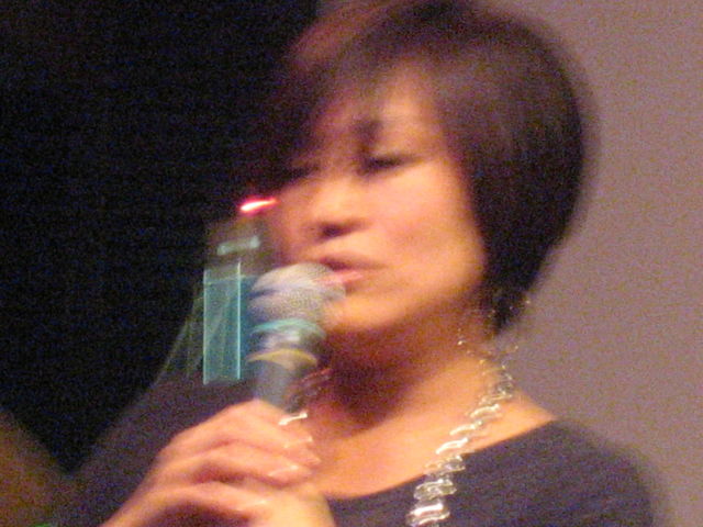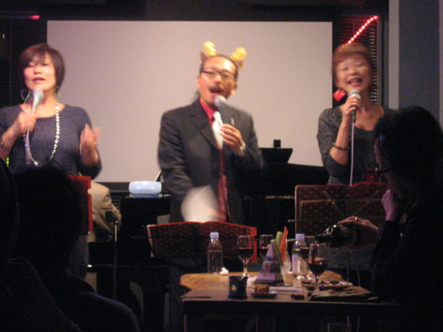 ヴォーカルユニット"a・i"の登場です。 美しいコーラスとアグレッシブなスキャットの応酬で、客席を沸かし続けています。 白眉は、チック・コリアの名曲にして難曲の「スペイン」でしょう。サッカーワールドカップでは、早々に予選敗退してしまいましたが、h.s.trashでは人気ナンバーワン! ピアノは、"a・i"にアレンジの提供もし、教則本も書いている宮前幸弘さん。ピアノ1丁で、個性は3人のヴォーカリストを、盛り立てます。 そして、ライブ当日18日は、中村早智さんの誕生日!ファンの方のみならず、お祝いに駆けつけて