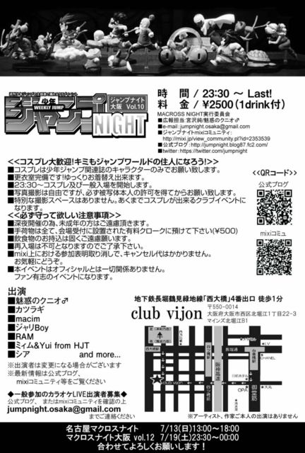 ¤Þ¤¿²ñ¤¨¤ë¡ª¥¸¥ã¥ó¥×¥Ê¥¤¥ÈÂçºå¡¢³«ºÅ¤Ã¤Ã¤Ã!!! ½µ´©¾¯Ç¯¥¸¥ã¥ó¥×¤òÃæ¿´¤Ë¥¸¥ã¥ó¥×¥Õ¥¡¥ß¥ê¡¼¤Î³Ú¶Ê¤ò³Ú¤·¤á¤ë¤Î¤Ï¥¸¥ã¥ó¥×¥Ê¥¤¥ÈÂçºå¤À¤±¡ª ¡ú¡ú¡ú¡ú¡ú¡ú¡ú¡ú¡ú¡ú¡ú¡ú¡ú¡ú¡ú¡ú¡ú¡ú¡ú¡ú¡ú¡ú¡ú¡ú¡ú¡ú¡ú¡ú¡ú¡ú ¡È¥¸¥ã¥ó¥×¥Ê¥¤¥ÈÂçºå¡¡Vol.10¡É ¡üÆüÄø¡ü2014ǯ7·î18Æü(¶â) 23:30¡Á ¡üÆþ¾ì¡ü¥³¥¹¥×¥ì´õ˾¼Ô¡¦°ìÈÌ¡§23:30¡Á¡¡ ¡ü¾ì½ê¡üËÌËÙ¹¾club vijon ¢¨Ãϲ¼Å´Ä¹ËÙÄḫÎÐÃÏÀþ¡ÖÀ¾Âç¶¶±Ø¡×4Èֽиý¤è¤êÆî¤ËÅÌÊâÆóʬ¡ª ¡ü½»½ê¡üÂçºåÉÜÂçºå»ÔÀ¾¶èËÌËÙ¹¾1-22 ¡üTEL¡ü 06-6539-7411 ¡ü²ñ¾ì¥µ¥¤¥È¢¡http://vijon.jp/ ¡üÎÁ¶â¤Ë¤Ä¤¤¤Æ¡ü