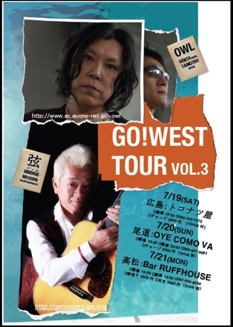 シンガーソングライター三好ひろあき&OWL(アウル)のJointライブを、 7月19日土曜日にトコナツ屋で開催します。 三好氏は福山市出身で京都府在住。 この道40年近い大ベテランで、関西の三大ギタリストと称される大御所。 沖縄のコーラスグループ「ネーネーズ」のギタリストとしても知られています。 OWLも20年以上のキャリアを持つ熟練ユニットです。 1991年にフォーライフレコードよりデビュー。 これまでにアルバム6、ミニアルバム4、シングル4をリリースしています。 ファンケル化粧品のテレビCMのほか、我那覇
