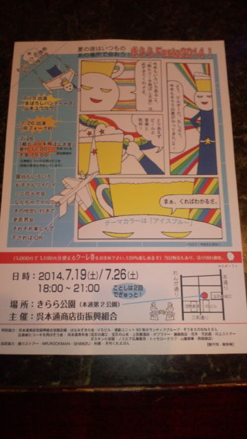 さぁ、今年もやってまいりました 2006年から始まり今年で開催9度目 2度目の2007年から参加し続けているオイラは今年で連続8年目 大人の土曜夜市としてスタートを切ったこのイベント、今年はチョット残念ながら7月19日(土)と翌週の7月26日(土)の2週だけの開催になりました・・・・ イベントの時間はPM6時からPM9時迄です しかし1週目の7月19日(土)は6時過ぎと8時過ぎにカクテルブース以外にもバンド演奏として参加します その名も「まぼ