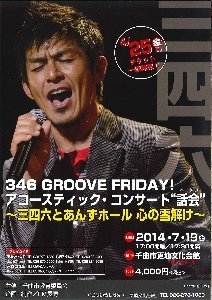 346 GROOVE FRIDAY! アコースティック・コンサート 話会(わかい) 〜三四六とあんずホール 心の雪解け〜 日時:2014年7月19日 17:30START 会場:あんずホール(千曲市更埴文化会館) 料金:全席指定 4,000円(税込み)