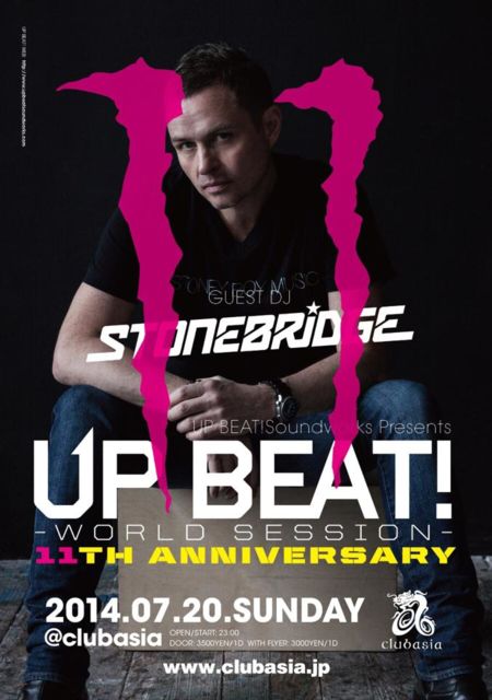 下記イベントディスカウント希望の方は【カタカナフルネーム+お連れ様の人数】を直接連絡下さい。 いよいよUP BEAT! 11周年! 1年に一度のお祭り開催いたします! 皆様是非とも祝いにご来場くださいませ! info UP BEAT!Soundworks Presents UP BEAT!-World Seission - 11th Anniversary Special-@asia OPEN/23:00 DOOR/3500YEN/1D W/F500YEN/OFF DISCOUNT 2000YEN/ND GUEST DJ Stonebridge DJs メインフロアー YAMARIKI 及川 淳 Cartoon チキン Saki MASASHI 2Fセカンドフロアー Special Thanks DJ CAR
