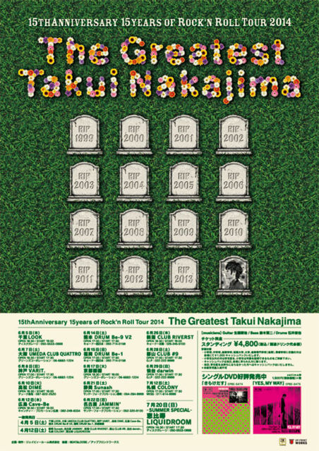 祝15周年! 祝新曲リリース!! と言うわけで、【中島卓偉カラオケオフ会2014】を実施したく思い この場をお借りして参加者様を募集します! ・ライブ前に予習したい人 ・ライブ行けないけど歌いたい人 ・歌うの苦手だけど、開演まで暇だから参加したい人 ・卓友を増やしたい人 卓偉好きであれば誰でも参加OK! 今回は恵比寿LIQUIDROOMでのライブ前の時間を使って 開催します。 ●2014年7月20日(日) 時間:14:00〜16:00 場所:メロディランド 恵比寿店 http://www.melodyland.jp/sho