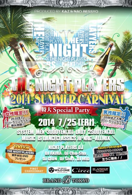THE NIGHT PLAYERSの真骨頂!夏の特大版!!2014 SUMMER CARNIVALの開催決定です。