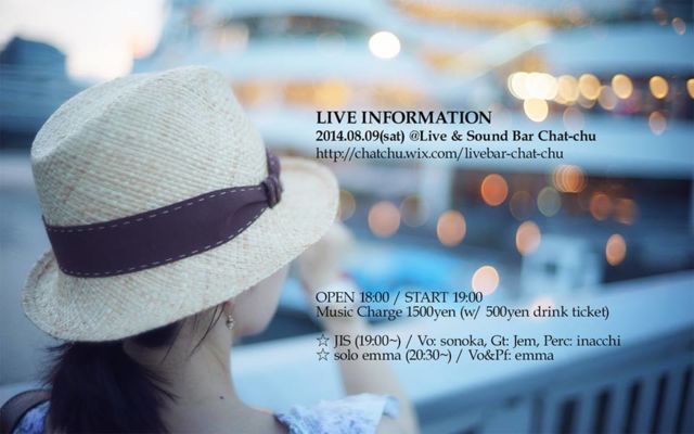 個人的にはUnplluged Jでお世話になっているsonokaさん率いる「JIS」と、Chat-chuライブ2度目のご出演となる「solo emma」さんのジョイントLive!