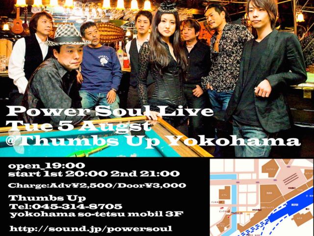 みなさんこんばんはPower Soulです。 次回のLIVEが決定しましたのでお知らせします。 8月5日(火)横浜Thumbs Up 1st 20:00〜 2nd 21:00〜 Charge Adv:\2,500/Door\3,000 真夏まっさかりのLIVE ぜひみなさま遊びに来て下さいね