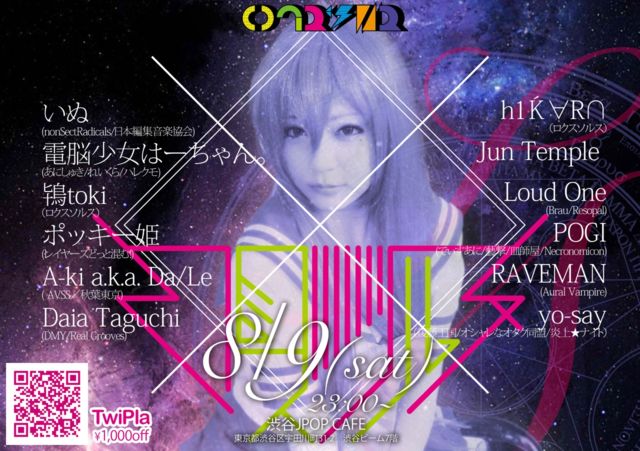 告知失礼致します! サイバー・エピック好き必見! 往年の名曲で綴る一夜です! 元○○トランスのDJも変名でスピン! あの頃の記憶をもう一度!! 連絡頂ければ500円OFFです! 8/9(Sat) 【BACK TO THE TRANCE】 Venue:渋谷 amate-raxi Open:23:00 Entrance fee:\2000/Included 1Drink この日、TRANCEが息を吹き返す! 関東各地のフロアをブチ上げてきた往年のTRANCE DJが渋谷amate-raxiに集結! 誰もが躍り狂った名曲達がamate-raxiの最強のサウンドシステムを震わせる! あの日の光景を、現実で取り戻せる一夜。 集え!TRANCE
