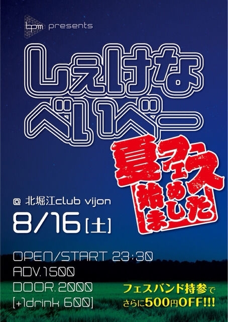 ¢¨´ÉÍý¿ÍÍÍ¡¢¥È¥ÔΩ¤Æ¼ºÎéÃפ·¤Þ¤¹¡£ ²Æ¤À¡ªBBQ?³¤¿åÍá? ¤ä¤Ã¤Ñ¤ê²Æ¥Õ¥§¥¹¡ª¡ª¡ª 2014ǯ²Æ¡¢Âçºå¤Î½»ÂðÃϤDzƥե§¥¹³«ºÅ¡©¡ª ¤½¤Î̾¤â¡Ú¤·¤§¤±¤Ê¤Ù¤¤¤Ù¡¼¡Û Á´¹ñ³ÆÃϤdzèÌö¤¹¤ëDJ¤¬Âçºå¤Ë½¸¤¤¡¢¤¢¤Ê¤¿¤Î²Æ¤òºÌ¤ê¤Þ¤¹¡ª ½é¤á¤Æ¹Ô¤¦¥¤¥Ù¥ó¥È¤Ç¤¹¤Î¤Ç¡¢¤É¤Ê¤¿¤Ç¤â¤ªµ¤·Ú¤Ë¡ª ¤½¤·¤Æ¡¢¤æ¤ë¤¯¡ª¤ª±Û¤·²¼¤µ¤¤¡ª ¡Á¤·¤§¤±¤Ê¤Ù¤¤¤Ù¡¼¤Î³Ú¤·¤ßÊý¡Á ¡¤·¤§¤±¤Ê¤Ù¤¤¤Ù¡¼¤È¤Ï¡ª ¥Õ¥§¥¹¤ò¥Æ¡¼¥Þ¤Ë¡¢¥í¥Ã¥¯¤äpop.EDM¤Þ¤ÇÍÍ¡¹¤Ê²»³Ú¤¬Î®¤ì¤ë ¡À¥ª¡¼¥ë¥¸¥ã¥ó¥ë¥¤¥Ù¥ó¥È¡¿ ¢Éý¹¤¤²»³Ú¥¸¥ã¥ó¥ë¤Ç¡¢¤É¤Ê¤¿¤Ç¤â¡ª