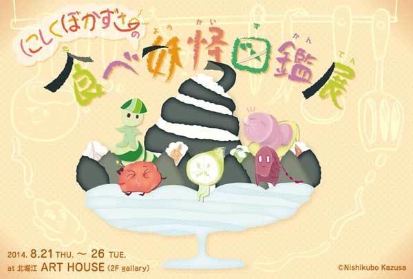 こんにちは、かずさです。 にしくぼ かずさの初個展を北堀江・ART HOUSEにて開催します。 在廊日は8月21日、23日、24日、26日です! 【にしくぼ かずさ 初個展】食べ妖怪図鑑展 日程:8/21(木)〜8/26(火) 時間:12:00〜19:30(最終日は17:00まで) 場所:ART HOUSE 2Fギャラリー 〒550-0014 大阪市西区北堀江1-12-16(地図) 行き方:地下鉄四ツ橋線 四ツ橋駅6号出口徒歩1分、 または 地下鉄御堂筋線 心斎橋駅7号出口徒歩8分 ♪絵本読み聞かせ&ギャラリーライブ 8/24(日) 15時頃〜(入場無料) 2Fギャラリーにて、絵