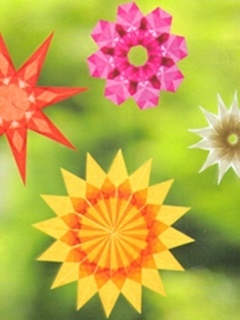 親子トランスパレント講座 あそびのアトリエ=東京杉並ルーム= ran(ラン)です。 トランスパレントとはカイトペーパーともいわれ、西洋カイトの製作にも使われるヨーロッパの折り紙です。 鮮やかな色はもちろん、光に透けると折り重なった枚数によって模様が浮き出る様子がとてもきれいです 夏の強〜いぎらぎらな日差しも、このトランスパレントを通せば、きらきら輝いてとってもすてき 日差しも少し和らいで感じられる……かも またこれらのオブジェを小さく作れば、クリスマスツリーのオーナメントにも