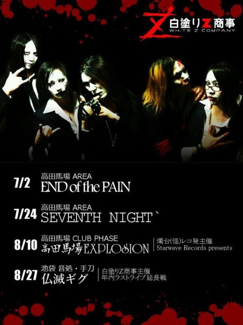 8月27日(水) NEO TOKYO IKEBUKURO CHOP DOME 白塗りZ商事年内最終公演 仏滅Zギグ!」〜一寸先に狼煙を放て!!!!!!!〜 前売¥2000(1D別) 当日¥2500(1D別) 開場 調整中 開演 調整中 <出演> 白塗りZ商事 / ファラオ / 精神霊園 / 週末ファイヤー / 輩(仮) / OA /