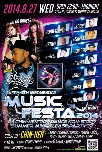 管理人様告知失礼します。 エントランスで、 ★★★★★★★★★★★★★★★★★★★★★★★ 「タイスケのゲストでキャメロット」 ★★★★★★★★★★★★★★★★★★★★★★★ と言って頂ければ、何名様でもゲスト料金でご入場頂けます。 男性2000YEN/1D 女性1500YEN/1D のゲスト料金です。 また個別にでもゲストお取りできますので、メッセージください。 宜しくお願いします。 8/27(水)「MUSIC FESTA」@渋谷camelot OPEN:22:00 CLOSE:5:00 GUEST DJ: CHINNEN