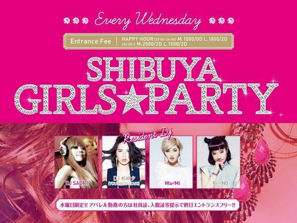 「ユウのゲストでティーツー」で 男性¥1,500/2D (21歳〜) 女性¥1,000/3D 加えて24時までは男女共に¥1,000でご入場できます♪ 〜特典〜 アパレル女性店員の方は入館証提示で☆入場無料+1D☆ ---------- 【SHIBUYA GIRLS PARTY】 PLACE / International Restaurant T2 Every Wednesday OPEN / 22:00 START LADIES:1500yen 2DRINKS / MEN:3500yen 2DRINKS 《1st》 Resident DJ SAORI / DJ 松崎夕(YOU MATSUZAKI) DJ’s Wa☆Mi / Rii☆No / MIO / Emilly 《2nd》 Resident DJ SAORI / DJ 松崎夕(YOU MA