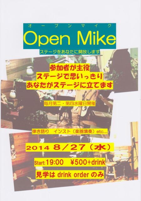 27日(水)オープンマイク Juke Joint NASH Presents Open/Start;19:00 ¥500+drink(見学drinkのみ)