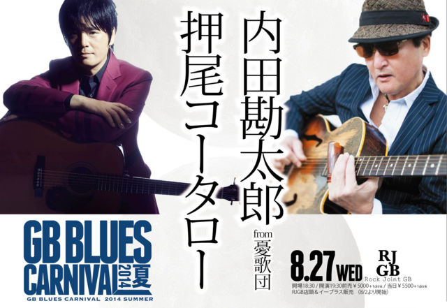 GB BLUES CARNIVAL 2014夏 押尾コータロー&内田勘太郎 の共演です! 8月27日 吉祥寺ROCK JOINT GB http://www.rock-gb.com/new/contents/event/gbc2014summer.html 必見です!