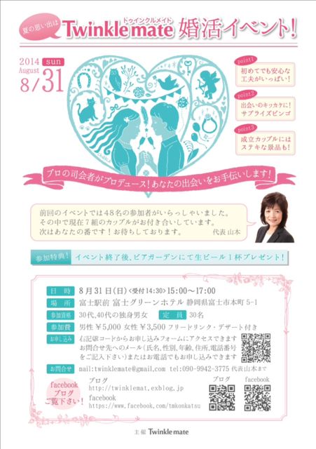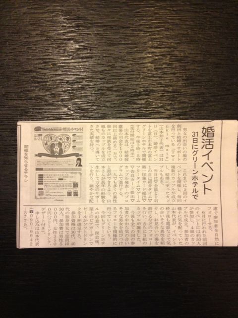 すでに、24名の方のお申し込みがあるそうです。 今月31日あと定員わずかですが、いかがでしょうか? 富士ニュースさんにも載りましたのでぜひご覧くださいわーい(嬉しい顔) 申し込みはメールもしくはお電話でお願いします★ mail:twinklemate@gmail.com tel:090-9942-3775 代表山本までお願いいたします★ 皆さんのご参加お待ちしております♬