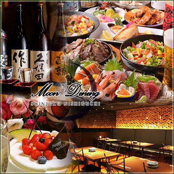 月日(日)新宿駅から徒歩1分 飲み放題&料理付き200名Spceial Party 新宿初会場『MOON ダイニング』貸切PARTY 久しぶりに新宿で開催します 飲んで食べてみんなで盛大に楽しみましょう〜 お店は駅から徒歩1分の『MOON