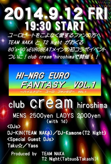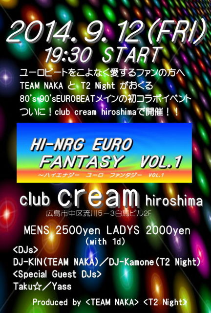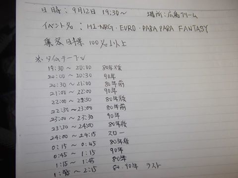 ついに広島で80年HI-NRG〜2000年パラパラの曲を中心としたイベントを行います。