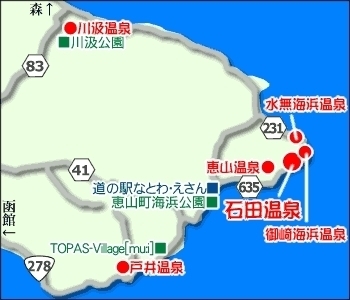 (道南ツーリング&温泉・・・恵山・函館方面) .開催日時 2014年09月20日(【20日(土曜)・21日(日曜)】) 開催場所 北海道(恵山・函館方面)) ************************************ (道南ツーリング・・・恵山・函館方面 ) 【日 程】 9月20日(土曜日)・21日(日曜日) 雨の予報30%以上の場合は中止とします。 【宿泊場所】 健康ランド湯都里 【持ち物】 海パン…タオル、ジャンバー(寒さ対策) 夕食は健康ランドで食べても良いし、何
