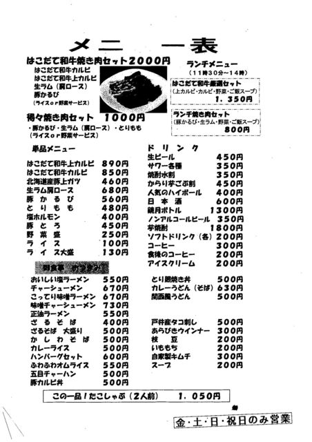 個人的におススメなお店での開催・第2弾w 今回は“焼肉バル”ですよ^^ * * * * * 日時】 9月6日(土)PM20:00〜 場所】 『焼肉バル BAR carne alla griglia(カルネアラグリーリア)』 札幌市中央区南3条西3丁目G-DININGビル6階 http://link.maps.goo.ne.jp/map.php?MAP=E141.21.28.755N43.3.15.312&ZM=11 会費】 4,000円(14品+120分飲み放題付) メニュー】 フード ・AMUSE:厚岸産カキの冷製ゴルゴンソース 活ダコのアフォガートのブルスケッ