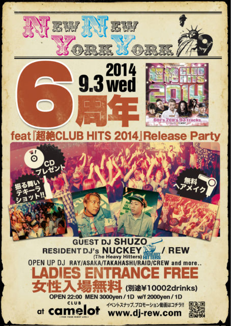9.3(¿å)½Âëcamelot½÷ÀÆþ¾ì̵ÎÁ!!½Âë¤ÎÊ¿Æü¤òÂåɽ¤¹¤ëư°÷¤È¿å½à¤ÎDJ ONLY PARTY"NEW YORK NEW YORK"¤Ä¤¤¤Ë£¶¼þǯ¤ò·Þ¤¨¤ë¤³¤ÎÆü¤ÏËþ°÷¸æÎé´Ö°ã¤¤¤Ê¤·!!