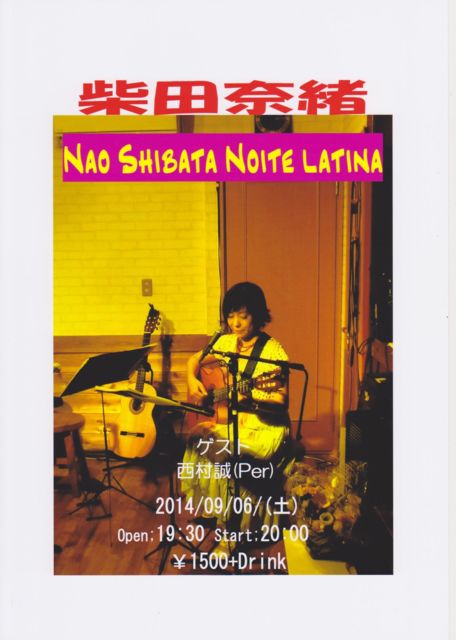 6日(土)夜Brazil 柴田奈緒「Nao Shibata Noite Platina」 柴田奈緒(G/Vo) 西村誠(Per) Open;19:30 Start;20:00 ¥1500+drink