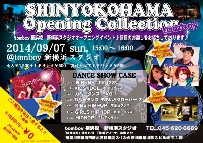 東京…埼玉…神奈川県…と関東に展開してきた老舗エンターテインメント・ダンススクール トムボウイ・ダンスインスティテュート http://tomboy.jp が、神奈川県横浜市2校目の神奈川県横浜市港北区に【新横浜スタジオ】として、この2014年秋にオープン致します。 オープンに先立ちまして、オープニングイベントの開催決定 そしてオープンを記念して、 イベントへ遊びに来てくれたお客様に新横浜スタジオの 通常入会金10,800円が→0円(無料)に! (当日に限り) ※入会時に9月レッスン料は必要となりますのでご用意下さい。 この機