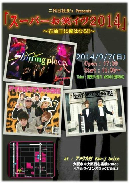 ¤µ¤¢¡ª¡ª ¤Ä¤¤¤Ëº£Ç¯¤â¥¢¥Ä¤¤¥é¥¤¥Ö¤¬·è¤Þ¤Ã¤¿¤â¤¼¡ª¡ª 9/7(Æü) ¥¢¥á¥ê¥«Â¼FANJ twice¡¡ ÆóÂåÌܼÒĹ's presents ¥¹¡¼¥Ñ¡¼¤ª¾Ð¥¤¥ô ¡ÖÀÐÌý²¦¤Ë²¶¤Ï¤Ê¤ë¡ª¡× ½Ð±é ¥¢¥¤¥É¥ë¥é¥Ö¥Á¥ã¥ó¥Í¥ë/Shining Place/¥Ë¥å¡¼¥Ý¥Ã¥×¥¹¥ª¡¼¥±¥¹¥È¥é ³«¾ì17¡§30 ³«±é18¡§00¡¡ Á°ÇäÆü¶¦2,000±ß¡Ê1DÊÌ) ¢¨¥Á¥±¥Ã¥È¤ÏÅöÆü¡¢Á°Çä¤ê¤¬Æ±³Û¤Î¤¿¤á¼è¤êÃÖ¤¥·¥¹¥Æ¥à¤Ï¤¢¤ê¤Þ¤»¤ó¤Î¤Ç²ñ¾ì¤Ç¥Ð¥ó¥É̾¸À¤¦¤Æ¤¯¤ì¤¿¤éOK¤Ç¤¹¡ª¡ª ¤Ê¤â¤ó¤ÇÅöÆü¡Ö¤¢¡ª¡ª¹Ô¤±¤ë¡ª¡ª¡×Ū¤Ê¿Í¤â¤ªµ¤·Ú¤Ë¤É¤¦¤¾¡¼¢ö ¤Á¤Ê¤ß¤ËShining Pl;ace¤ÏPM7»þȾ¤¹¤®¤«¤é¤Î½Ð±éͽÄê