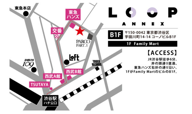 タキザワユキヒトpresents 『Sing and Groove vol.9』-Acoustic- OPEN/18:00 START/18:30 TICKET 前売/¥2500 当日/¥3000 w/ タキザワユキヒト / COCOA / JUNNY(もりきこ) / 大知正紘 ※ブルグ出演予定時間⇒ 18時50分〜 SHIBUYA LOOP annex 〒 150-0042 東京都渋谷区宇田川町14-14 コーノビルB1F JR渋谷駅徒歩6分。井の頭通り直進、東急ハンズ右折の通り沿い。1FがFamily MartのビルのB1F。
