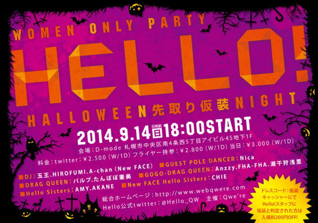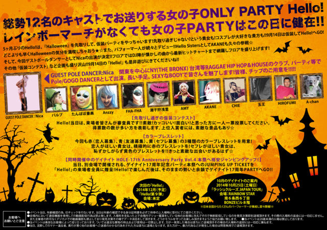 タイトル/ Women Only Party「Hello!」 Halloween先取り 仮装NIGHT