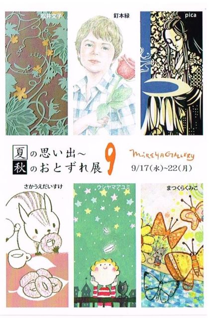 夏の思い出〜秋のおとずれ 展 http://photo.mixi.jp/view_album.pl?album_id=500000092337116&owner_id=6660735 2014年 9月 17日 〜 22日 ウシヤマアユミ 釘本緑 さかうえだいすけ pica 松井文子 まつくらくみこ