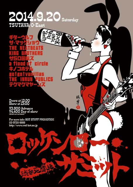 来週末はお馴染みロッケンロールサミットだ!! 今年から渋谷O-EASTに会場が変更だ!! なんと今回、ギターウルフポマード!ギターウルフコーム! ロッケンロールサミットコームなどを発売する! 欲しい人は会場に来るべし!!!! ロッケンロー★サミット2014〜渋谷死闘編 14/7/12(土) 出演 ギターウルフ / ザ・マックショウ / SA / THE NEATBEATS / KING BROTHERS / ザ50回転ズ / a flood of circle / キノコホテル / go!go!vanillas / THE INRUN PUBLICS / テクマクマヤーンズ 開催日時 2014年9月20日(土) 12:30 OPEN 13:00