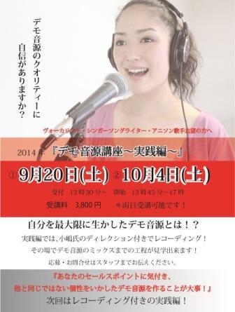 デモ音源講座〜実践編〜!! ミュージカル、声優、俳優、シンガーソングライター、アニソン歌手、ヴォーカリスト 志望の歌が必要な全ての方へ!!! 小嶋隆一氏(元ソニープロデューサー・エンジニア)による講座を開催致します! 基礎編は、デモとはというところから始まり、デモ音源を送る先の事を知り、 デモ音源に実際何を入れ込むのかのお話でした。 実践編では、レコーディングするモニターさんに歌って頂き録音します。 見学も可能です!!プロからのディレクション、間近でミックスまでの工程を 体験でき、デモ録音としての作品が