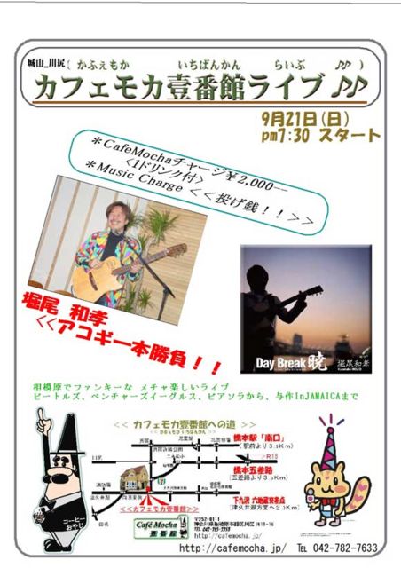 ËÜÆü¤Ç¤¹¢ö¡¡9·î21Æü¡ÊÆü¡Ëpm7:30~¡¡ ¥«¥Õ¥§¥â¥«ÔåÈִۥ饤¥Ö¡¡ ËÙÈø Ϲ§¡Ö¥¢¥³¥®°ìËܾ¡É顪¡ª¡×¡¡¡£(^_^)v