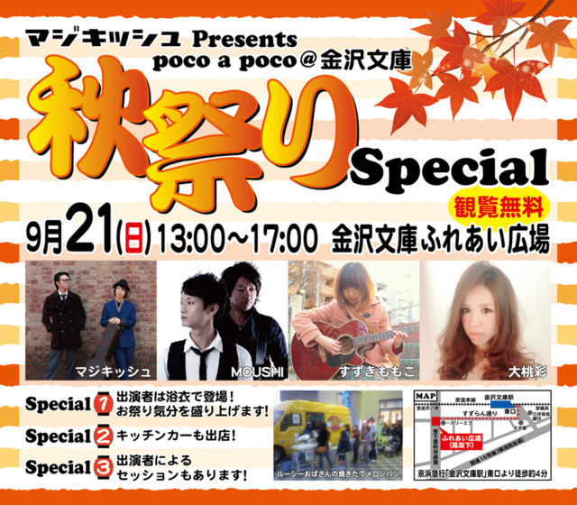 ¥Þ¥¸¥¥Ã¥·¥å¤¬¼çºÅ¤Î½©º×¤ê¥Õ¥ê¡¼¥é¥¤¥Ö¾ÜºÙ·èÄꡪ¡ª ¤³¤ÎÆü¤Ï¥Þ¥¸¥¥Ã¥·¥å¤«¤é´ò¤·¤¤È¯É½¤â¤¢¤ê¤Þ¤¹¢ö ¤¼¤Òݤ¤Ë¤¤¤é¤·¤Æ²¼¤µ¤¤¡ª ¥Þ¥¸¥¥Ã¥·¥å Presents poco a poco@¶âÂôʸ¸Ë¡Á½©º×¤êSpecial¡Á Æü»þ : 9·î21Æü¡ÊÆü¡Ë ¾ì½ê : ¶âÂôʸ¸Ë¤Õ¤ì¤¢¤¤¹¾ì »þ´Ö : 13:00¡Á17:00 ½Ð±é : ¥Þ¥¸¥¥Ã¥·¥å/MOUSHI/¤¹¤º¤¤â¤â¤³/ÂçÅíºÌ ÎÁ¶â : ´ÑÍ÷̵ÎÁ ½Ð±é¼Ô¤ÏÍá°á¤ÇÅо졪¤ªº×¤êµ¤Ê¬¤òÀ¹¤ê¾å¤²¤Þ¤¹¢ö ¥¥Ã¥Á¥ó¥«¡¼¤Î½ÐŹ¤â¤¢¤ê¢ö ½Ð±é¼Ô¤Ë¤è¤ë¥¹¥Ú¥·¥ã¥ë¥»¥Ã¥·¥ç¥ó¤â¤¢¤ê¤Þ¤¹¢ö